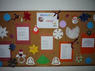 Podczas ostatniego spotkania przed Bożym Narodzeniem rozmawialiśmy na temat Świąt oraz związanych z nimi tradycji polskich i innych państw - dzieci dowiedziały się m.in. skąd pochodzi zwyczaj śpiewania kolęd, kto zbudował pierwszą stajenkę oraz, że łamanie się opłatkiem jest znane tylko w naszym kraju. Wysłuchaliśmy „Legendy o choince'', rozwiązywaliśmy krzyżówkę, której hasła należało odgadnąć na zasadzie skojarzeń. Rodzice za pomocą gestów pokazywali, jakie prezenty można znaleźć pod choinką. Spotkanie zakończyło się wykonaniem oryginalnych ozdób świątecznych.